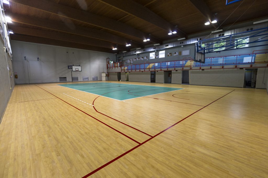 Una palestra polivalente, utilizzata sia per la pratica agonistica della pallavolo sia per il normale uso scolastico, ma con anche la necessità di poter saltuariamente essere impiegata per impieghi extrasportivi.
