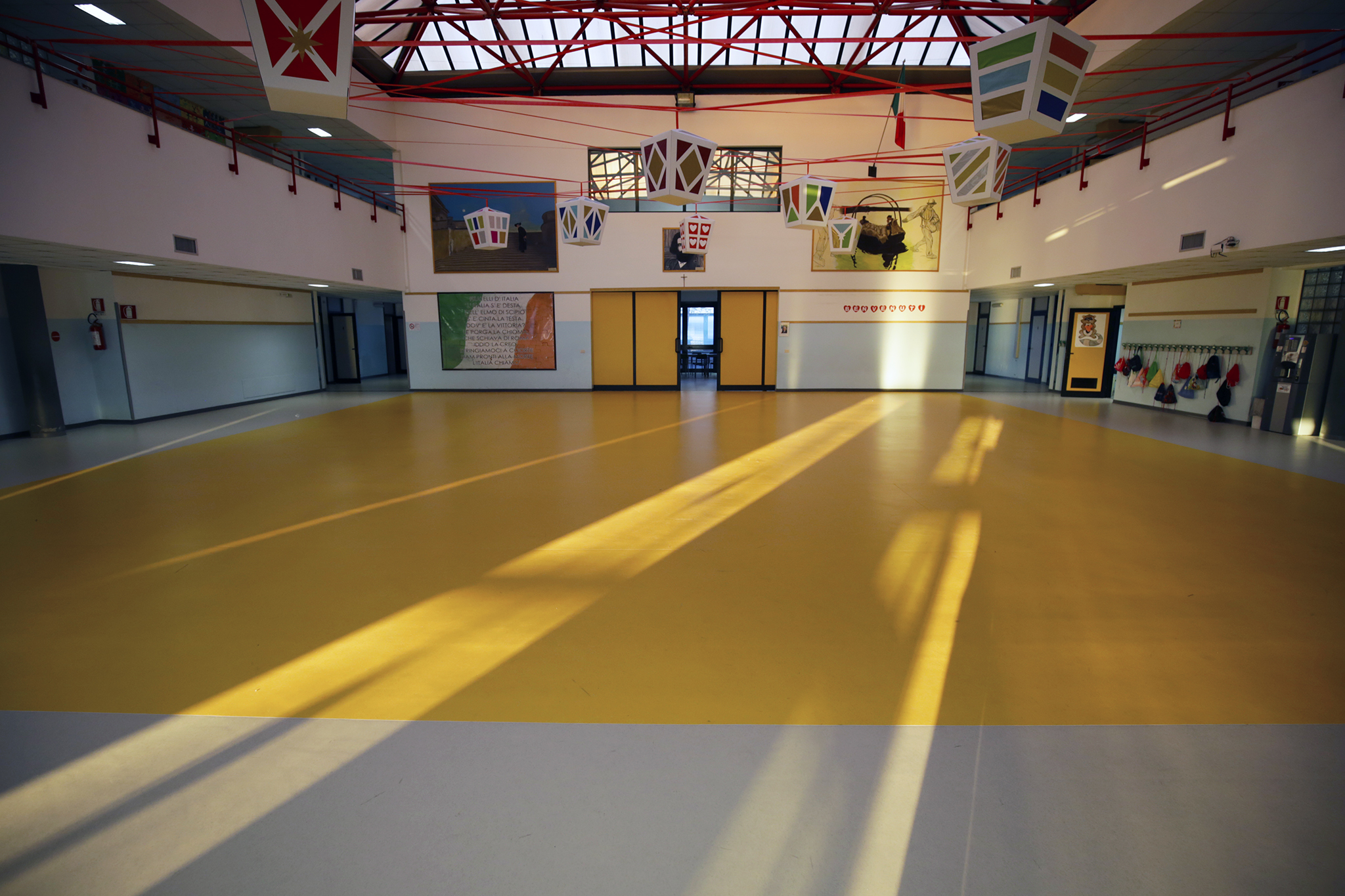 Oltre 700 mq di saloni, aule e corridoi con due difficoltà da superare: la presenza di umidità nel sottofondo e la necessità di rimuovere la vecchia pavimentazione e posare quella nuova avendo a disposizione solo le vacanze di Natale.